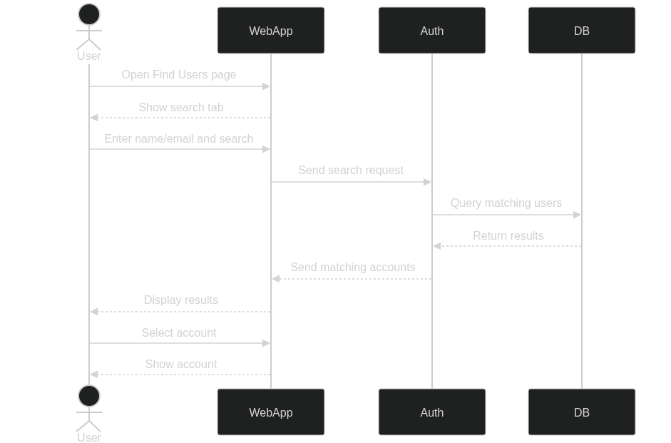- The user opens the Find Users page/search bar.
