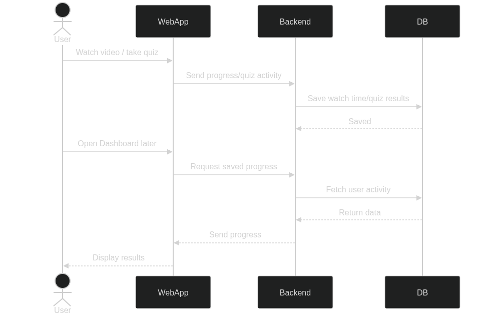 As a user, I want my video and quiz activity to be saved automatically so that my progress can be tracked.